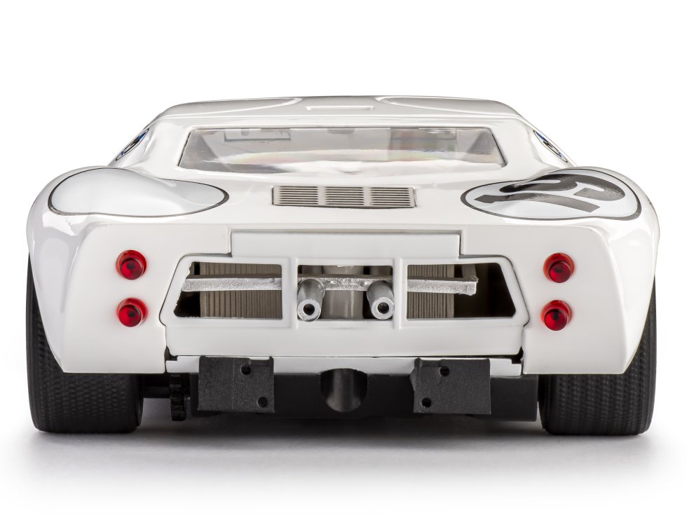 The GT40 is one of the mainstays of Slot.it's Classic range of cars. As you can see from the wonderful Slot.it historical archive, the GT40 was the third model in this range, after the Alfa Romeo 33/3 and the Chaparral 2E. The standard layout is the powerful and super-smooth MX16 23k rpm S-Can motor in a 0.5mm offset sidewinder pod, making the Slot.it Classic cars really easy to drive. The original GT40 / MkII chassis has been updated, with the Brescia Corse car featuring the EVO6 version, which has an adjusted guide position to improve handling. The car is fitted with a relatively weak magnet and has the new motor cable with connectors for easy, non-solder conversion to digital - if using a compatible Slot.it chip.