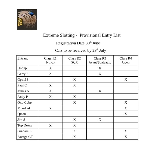As a reminder this is not part of the "Triple Crown Series" as the type of "off road" tracks used in this competition are quite specialised and it is more of a capability competition than a sprint type event.