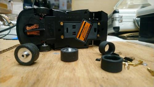 ...the remnants of my Molesey GT car that was brutally exposed as not being fit for purpose last night! A series of 'on the hoof' adjustments, and the borrowing of bits from other proven runners meant that this was how the car returned to my bench, having left it in one piece!