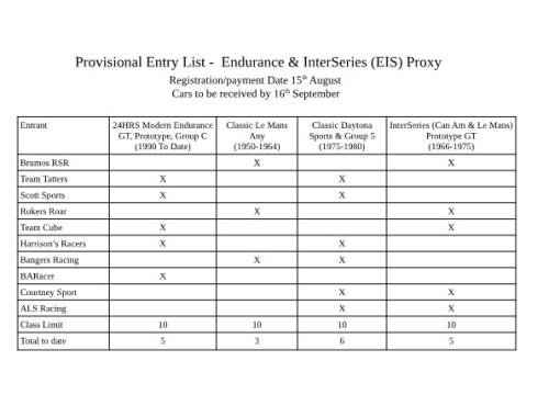 But here is the up to date list of entrants, we are nearly half full of cars already