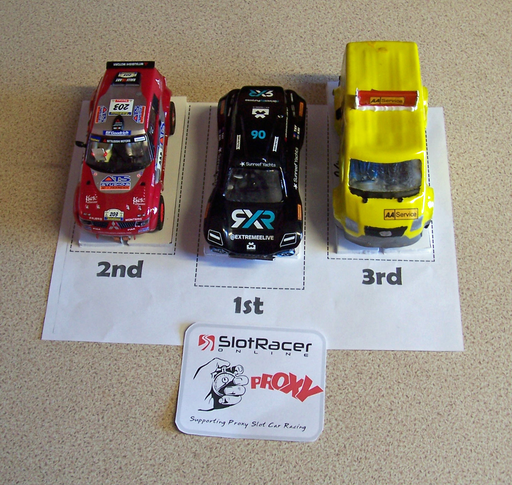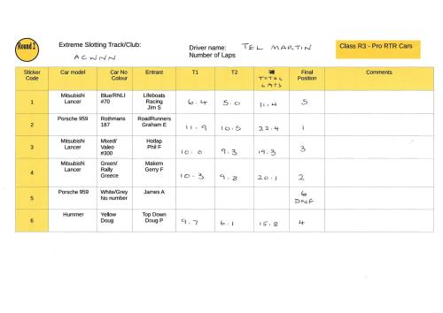 As my raid track has no timing option we gave the cars a two minute run on each lane with total laps the scoring method. Thankfully there was no need for a secondary measurement as there were no ties for position. Tel had an entry in two of the classes so I drove those ones and he did the other two which he wasn't involved in to ensure no favouritism.