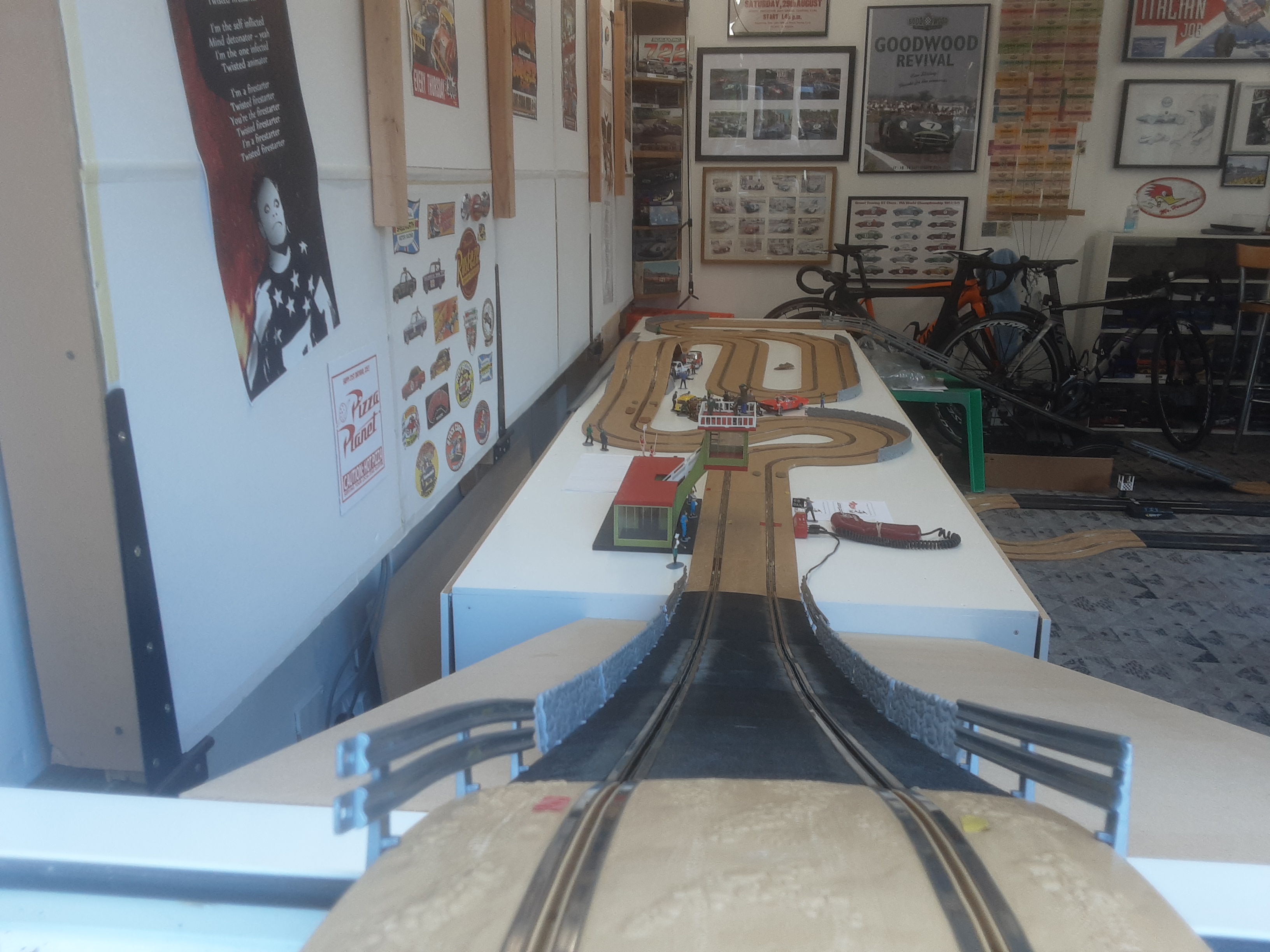 5 ft 2 in in length, this section of track drops only 1ft 6 in onto the large white storage unit. This is the "Stadium " section.