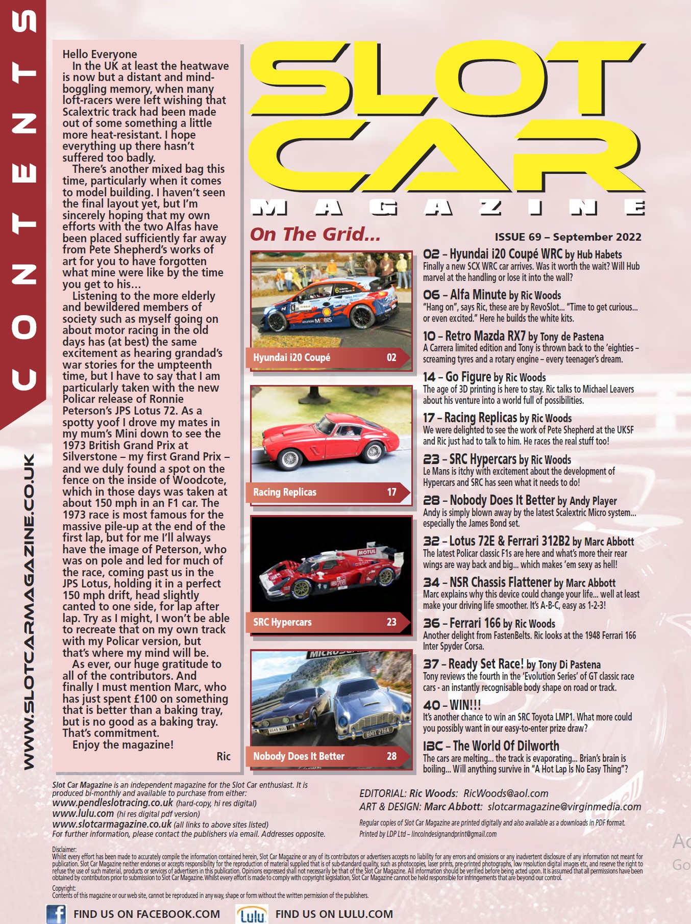 Now available the PDF version of issue 69, September 2022 of the stunning Slot Car Magazine International by Ric Woods and Marc Abbott from Lulu,