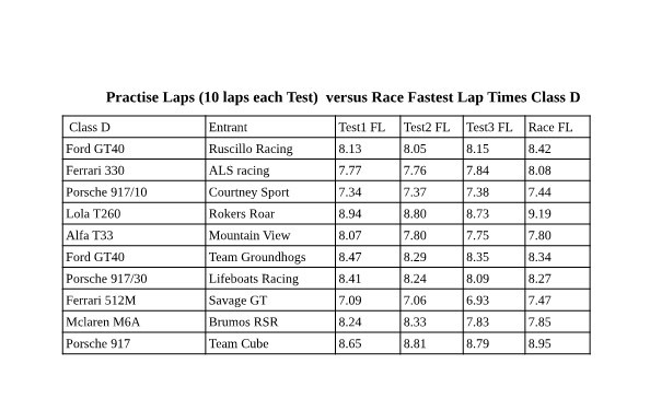 At the bottom end the Lola T260 of Rokers Roar was great to watch running, did not require alot of careful control, but I am sure the Team will not be too surprised at the result relative to the nature of this very fast class of cars.
