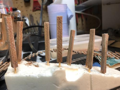 Then I made some thicker post from balsa and stained and dry brushed them.