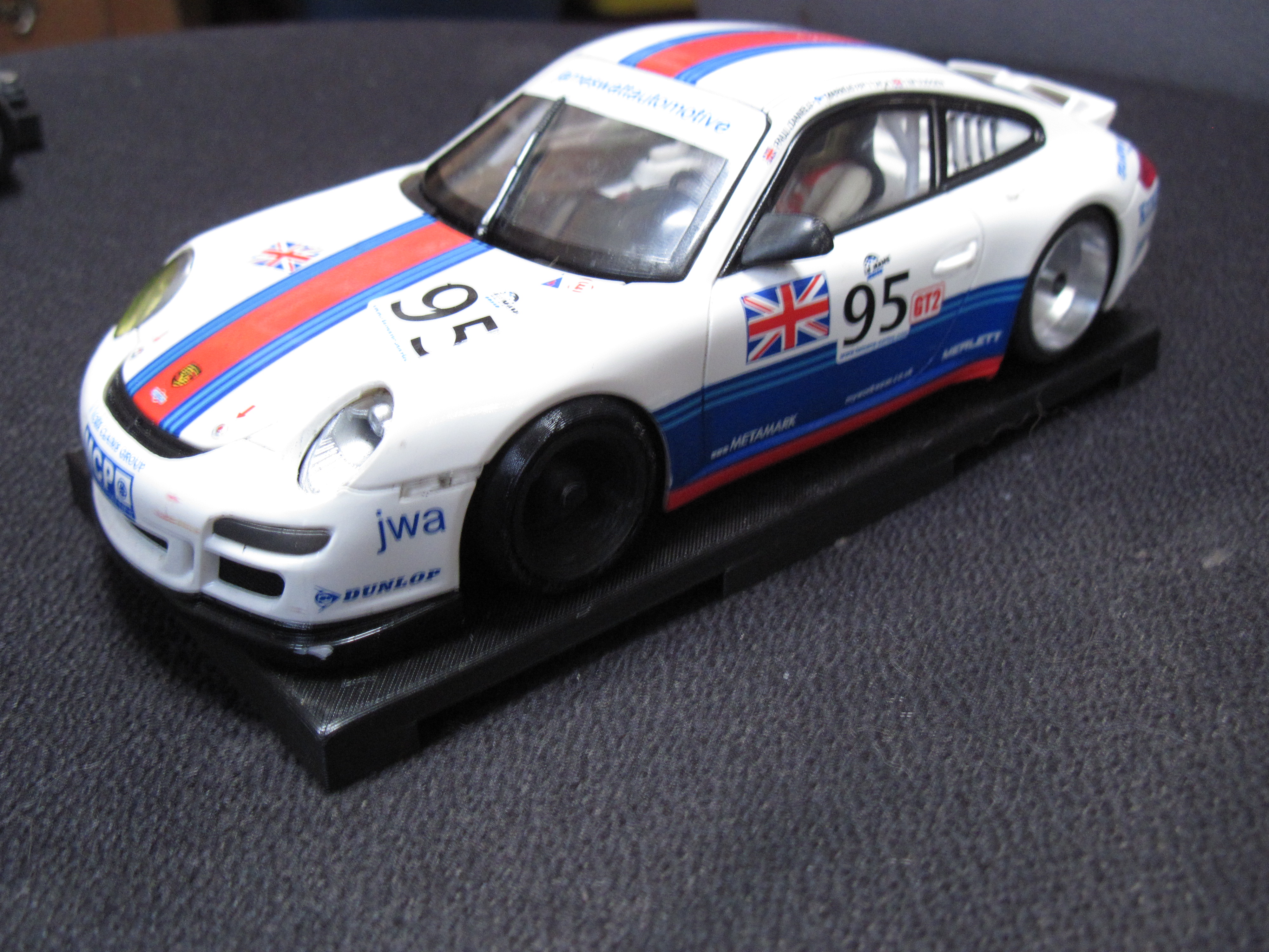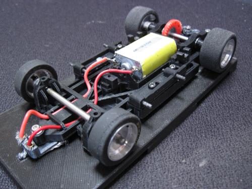 Two versions available either SW for short can boxer (Revoslot 21K fitted or the original Xlot motors) or IL for the Flat 6 motor. (Note Flat 6 version, the interior requires surgery, SW does not.) Both chassis' have a floating pod either on a Torsion arm or springs (IL) or torsion arm only (SW). Pod takes the 3mm axle flanged ball races, and requires either Slot It SW cog (drilled out to 3mm) or the BRM 1/24 cogs for the IL version. Both chassis' use the original Ninco side body mounts which can be adjusted to centralise the chassis in the wheel arches.