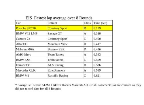 The Fastest lap average over the 8 Rounds was of course the Porsche 917/10 of Courtney Sport