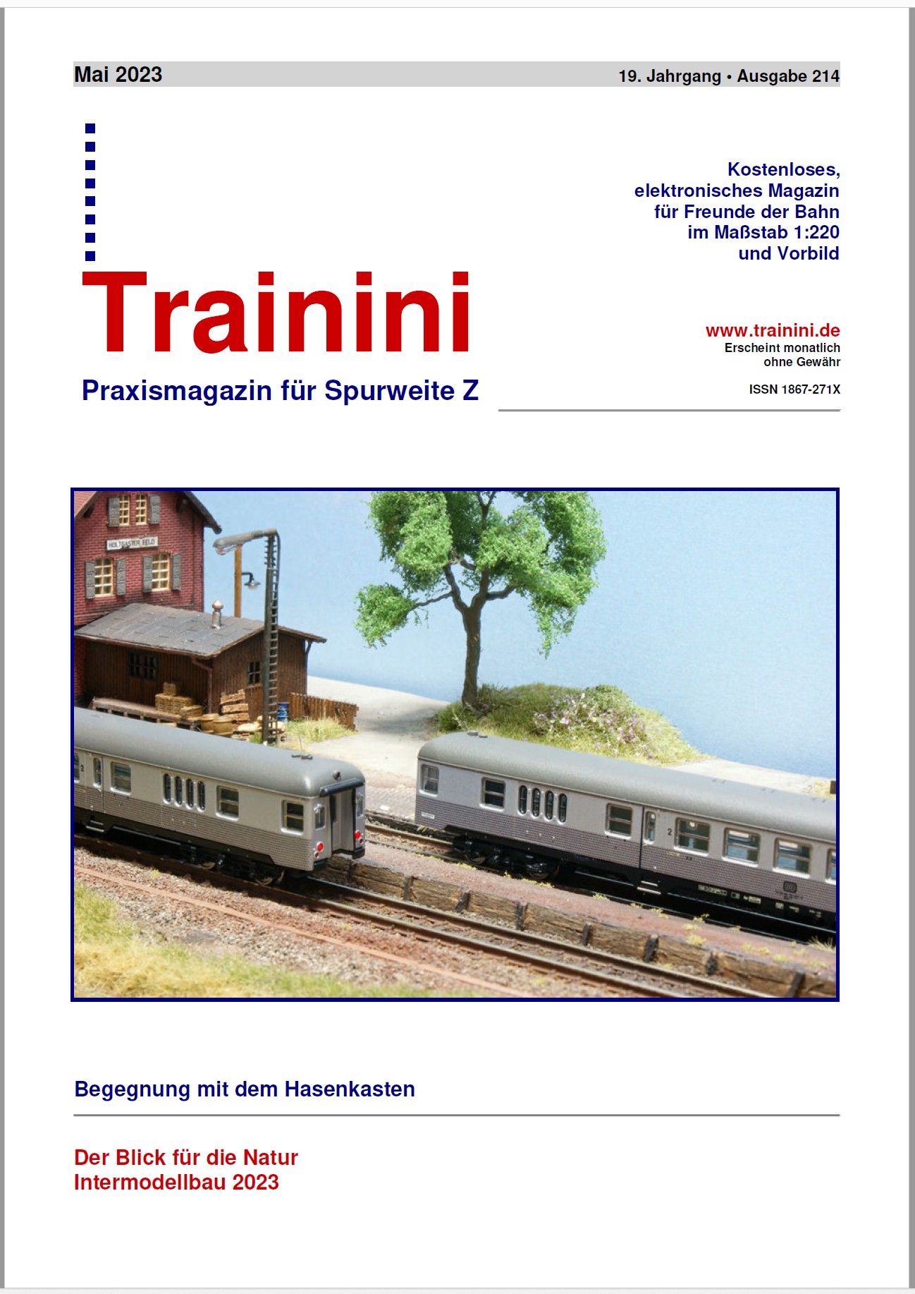 The new free 74 page, issue number 214, May 2023 Trainini magazine for 1:220 scale (Z scale) model trains is available now.