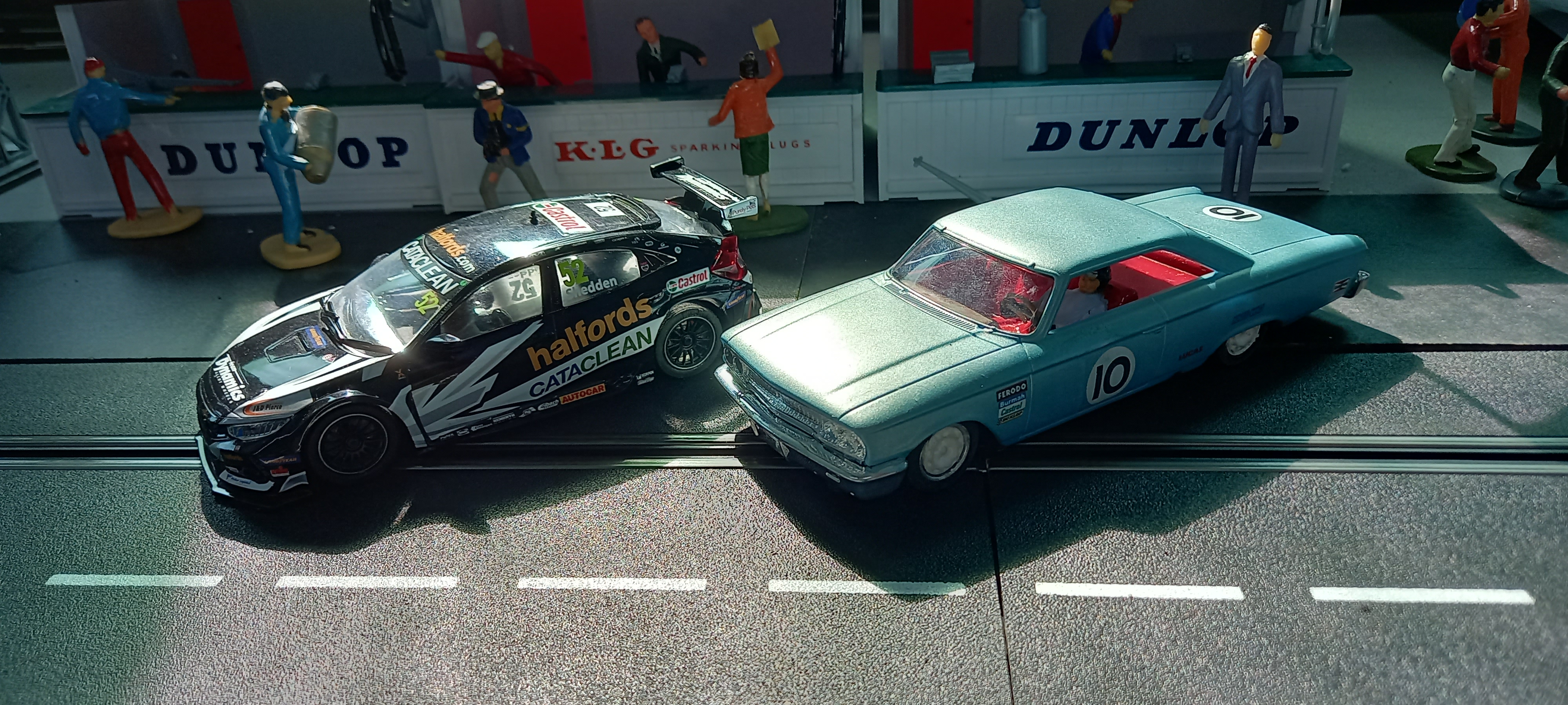These are the cars I am entering, originally wanted to enter a Volvo 850 Estate (as I never raced an estate slot car before) instead of the Honda Civic, but bad weather hindered my earlier paint work attempts, and to be honest even when I did get to do it, it turned out pretty poor. So I had to strip it off again and currently it is only supporting a one colour covering....could I finish it by Saturday, highly unlikely but I may have another go today. But it does run quite fast.