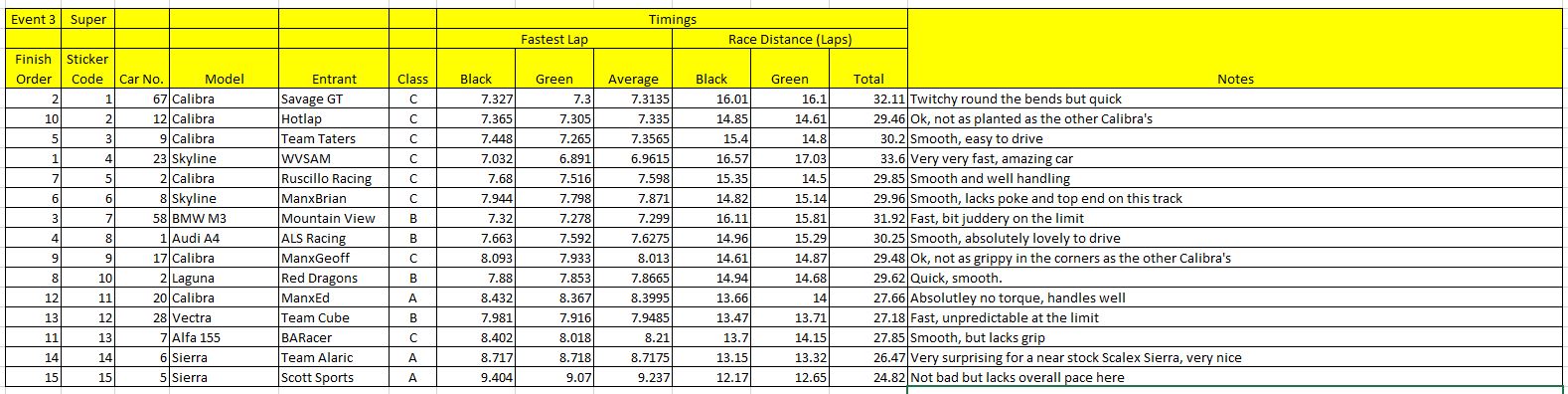 Also, apologies to Team Cube and your Vectra, a marshalling error cost you an additional off which may have lost you something in the region of 1/2 lap.