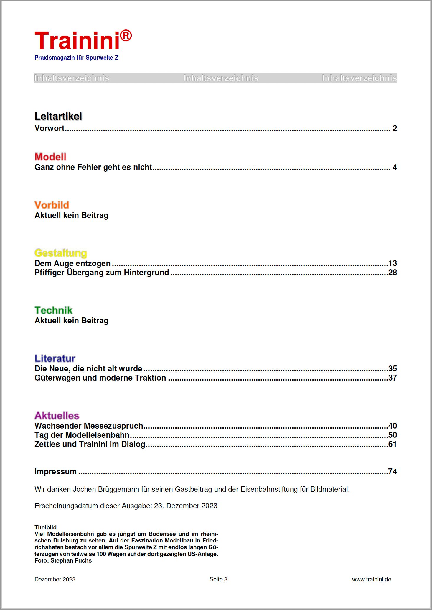 Trainini magazine is published monthly by Publisher & Editor : Holger Späing