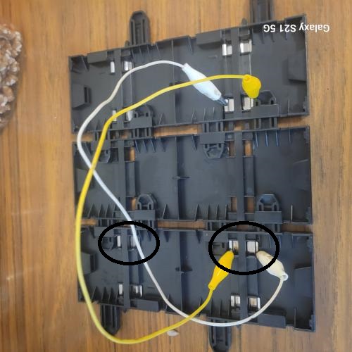 Instead. Replace the yellow/white on one side to both white on one lane. And both yellow jumpers on the other lane. Within the circles/ovals.