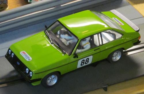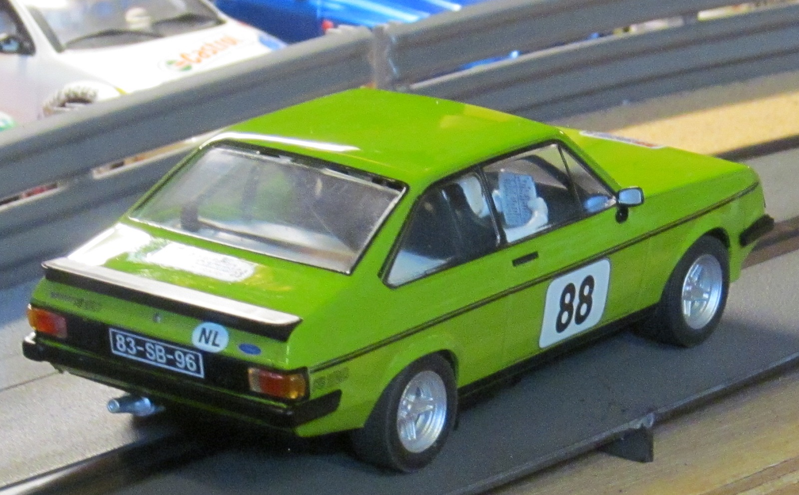 My recently purchased Team Slot Escort RS2000 road car has morphed into a club rally car. A long dead Revell Audi Sport Quattro donated its interior (I wanted a left-hand drive one, to match the wiper layout). Decals were drawn by me, in Inkscape, and printed by Wraith.