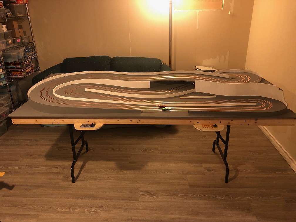 This is on a 3' by 7' foot base. The track is 3/8" inch MDF. Burnishing is next followed by wiring and power.
