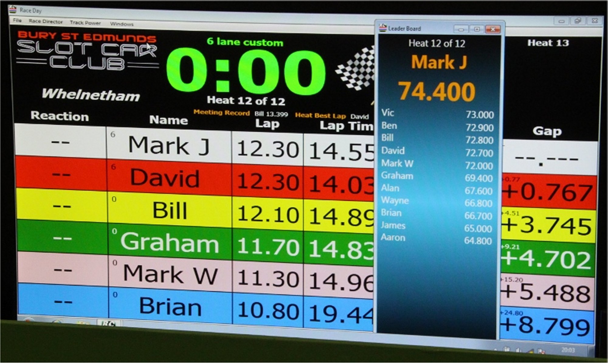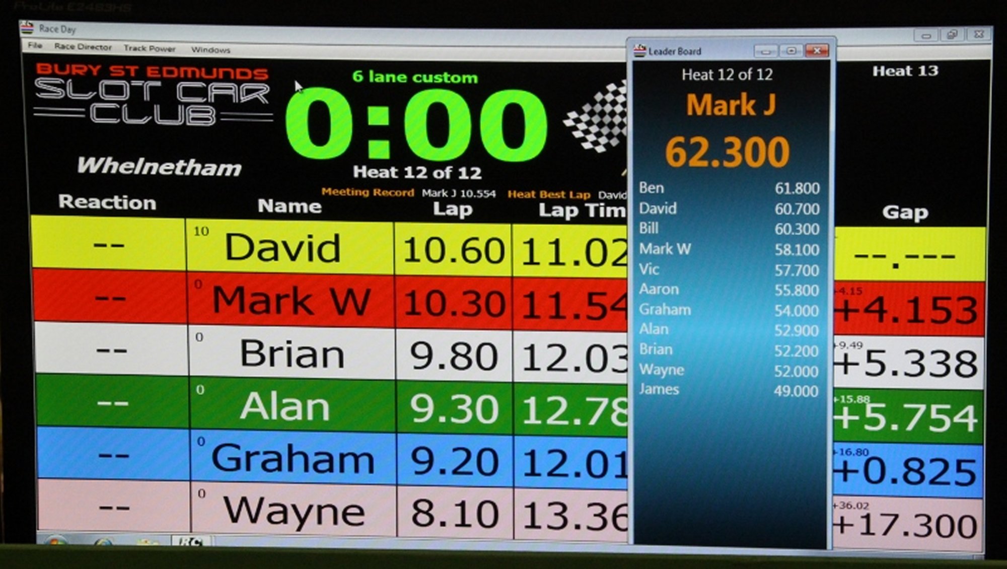 (As well as club cars Vic' also provided loan cars for those that needed them. Club controllers are also provided so the first 'trial meeting' is entirely free for those that want to give the Bury St Edmunds club a try.)