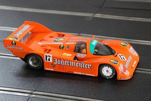 Slot it Porsche 956 Jagermeister. Vic's backup car NSR Aston Martin white/blue raced by DavidBen's yellow NSR Mclaren 720s NSR Aston Martin Gulf raced by Mark R (& Vic in one heat)