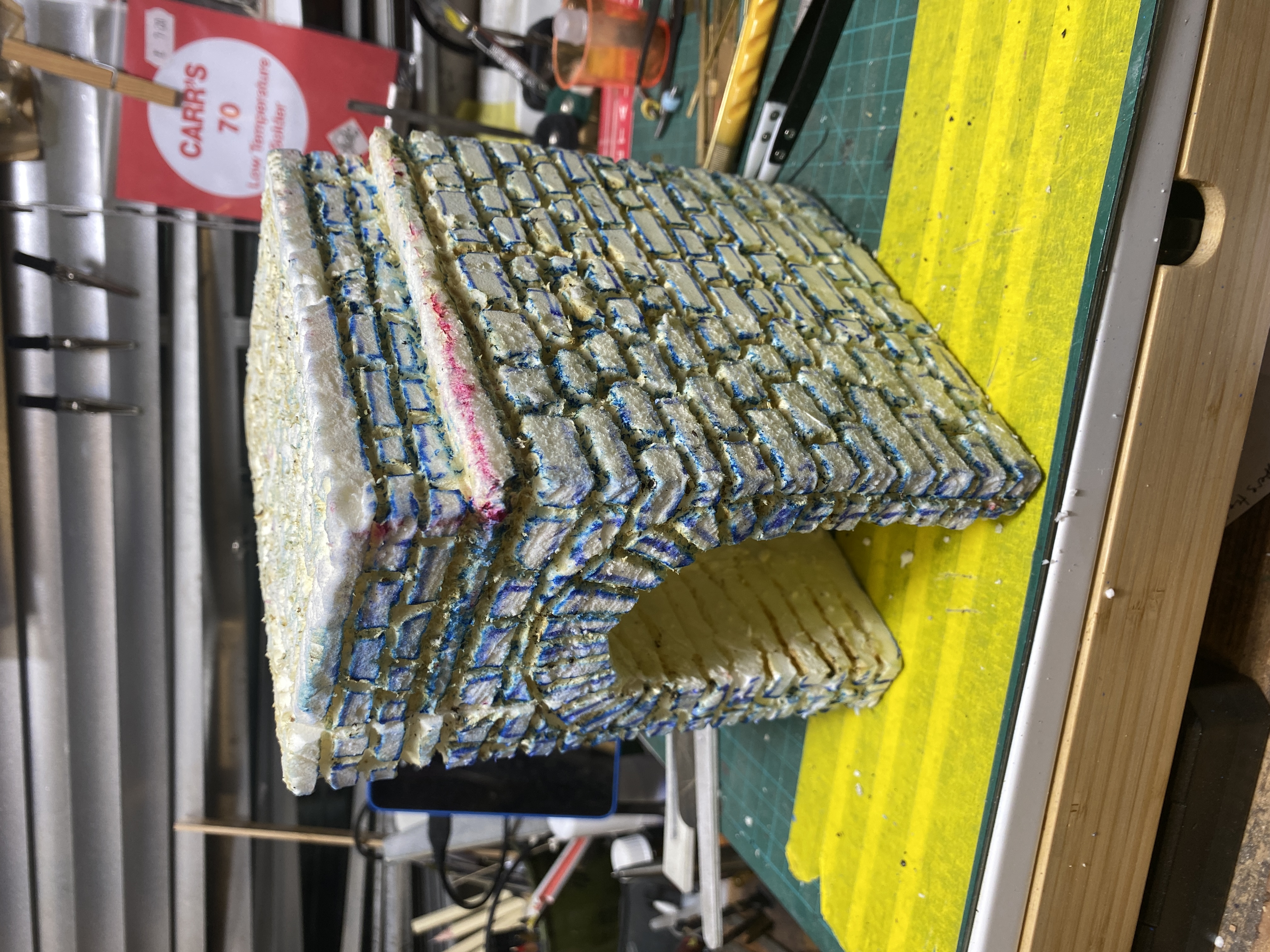 Then got a old soldering iron out and started shaping the bricks.