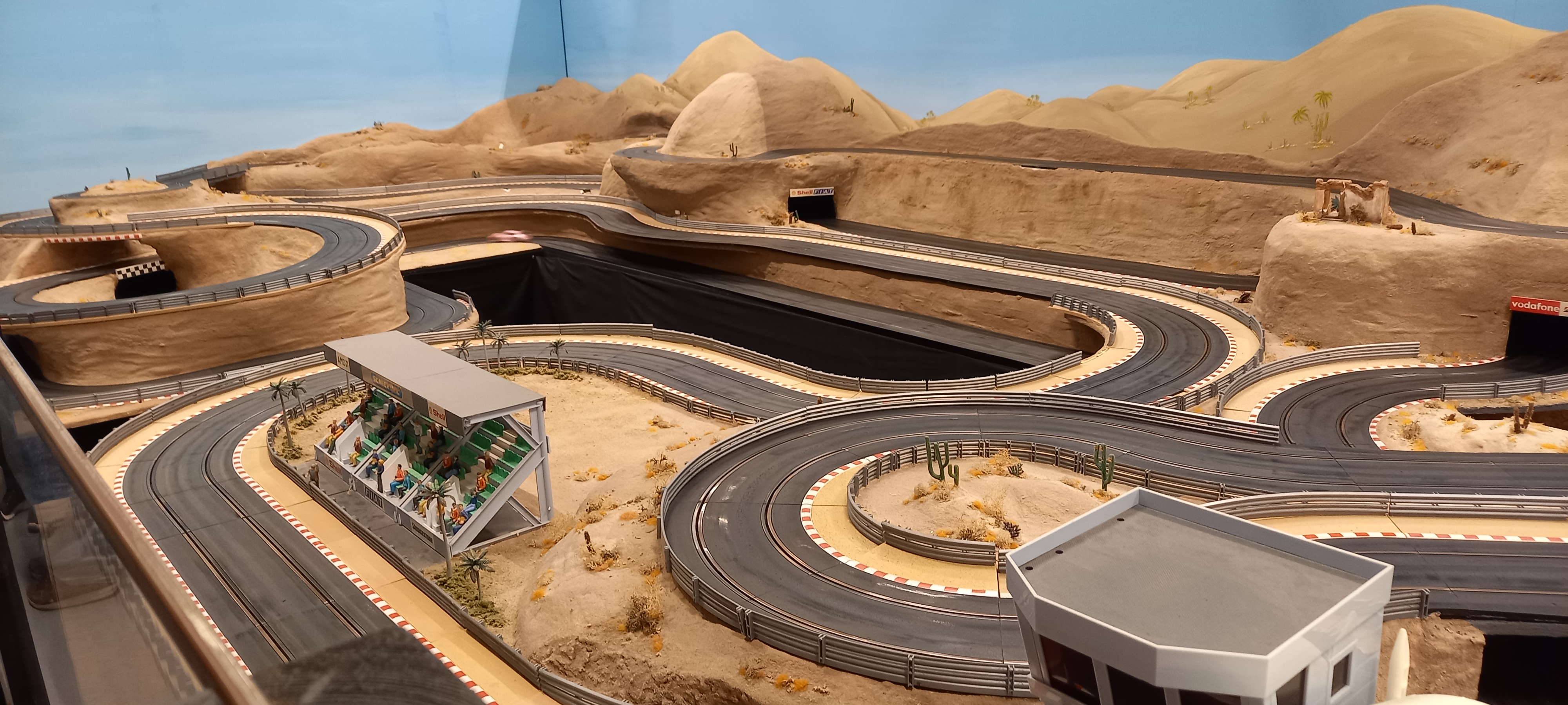 In actual fact it is four different layouts in one and quite why you would want an automated track is beyond me but it is impressive to watch. Incidentally they use NSR cars on the track because Scalextric ones proved too unreliable!