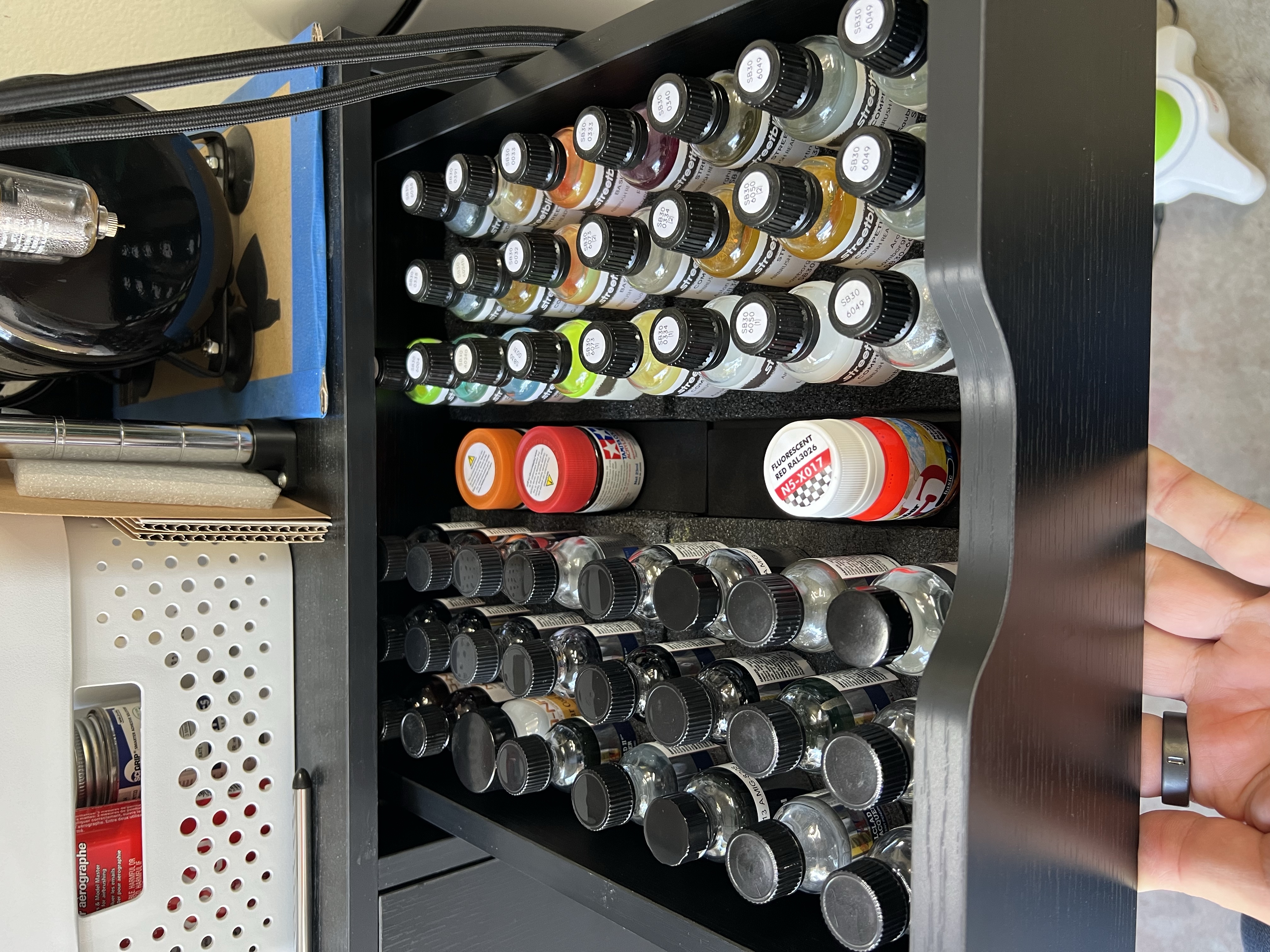 Another tip I can provide is use paint that is pre-thinned for airbrushing and stick with that brand. I use MrColor and Alclad primer, Alclad chromes and metals, and 3 types of colors - Number5, Street Blisters, and ProScale Paints. They're all exceptionally well for their task.