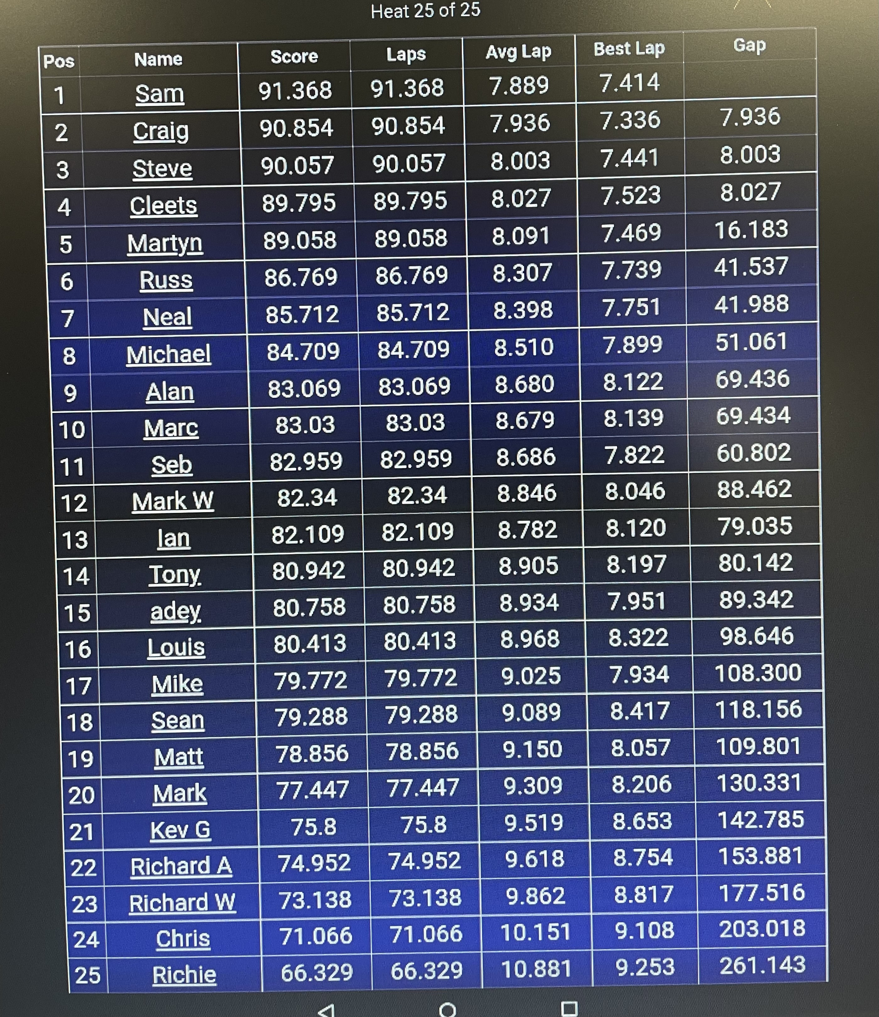 Results from round 1. Slot it Oreca class.