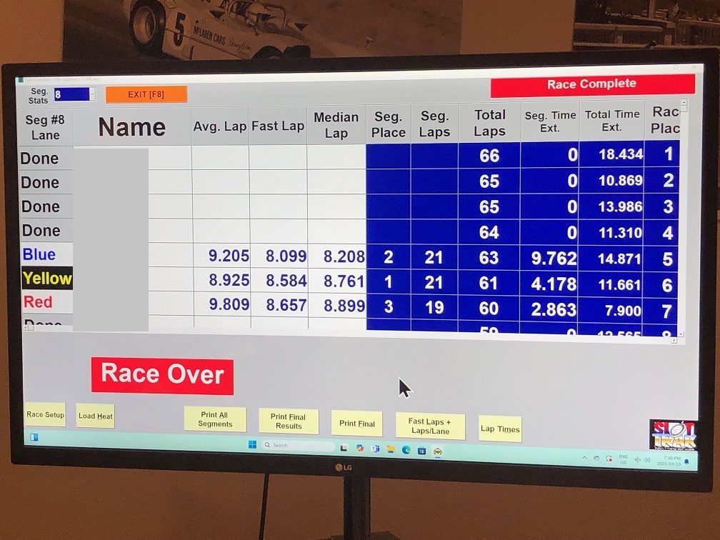 After enjoying our usual slot car delicacy, pizza. The racing got started.