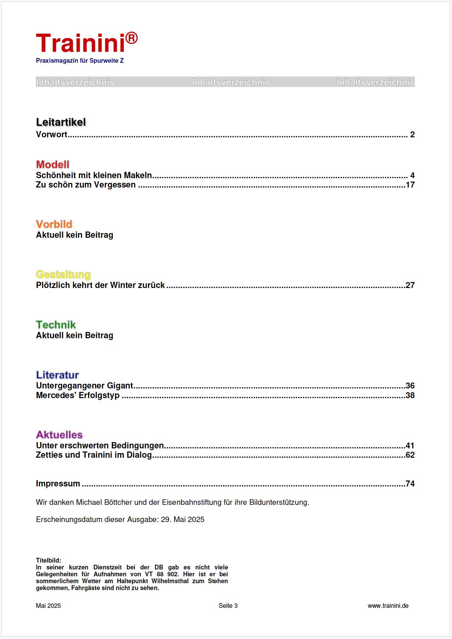 Trainini magazine is published monthly by Publisher & Editor : Holger Späing