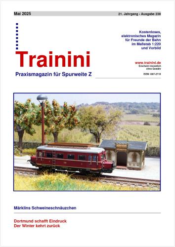 The new free 74 page, issue number 238, May 2025 Trainini magazine for 1:220 scale (Z scale) model trains is available now.