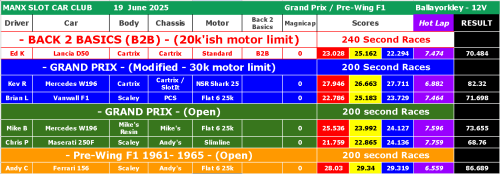 Manx Slot Car Club - Grand Prix & prewing F1 - 19th June 2025
