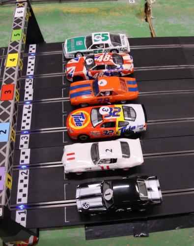 Six heats, each of four minutes, produced some competitive racing with three or even all four cars swapping the lead in most of the heats. However, in one of the heats a major crash involving three cars probably caused two drivers to miss out from being in top spot. Steady driving and avoiding (most of!) the accidents saw Vic come home the winner with his blue Camaro. Just over half a lap back was Ben, taking second place in this class too - consistent, eh! while Graham took a great third place.