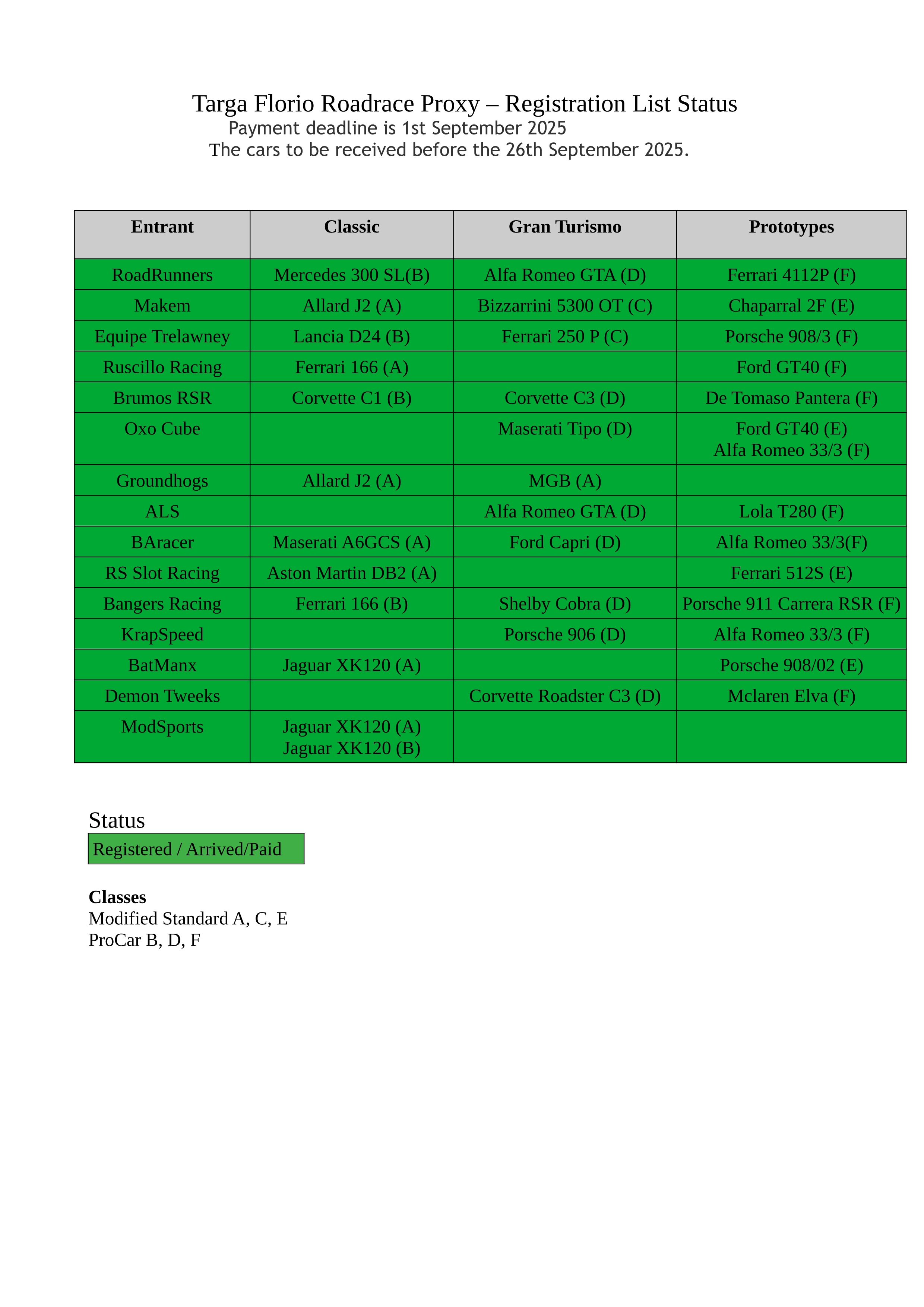 To be inserted, the Scrutineering will be done before I start the 1st Stage. No penalty points will be applied before we start the race, but I reserve the right to do so at the end of the series should I feel that any car has gained an unfair advantage entering a non-compliant car.