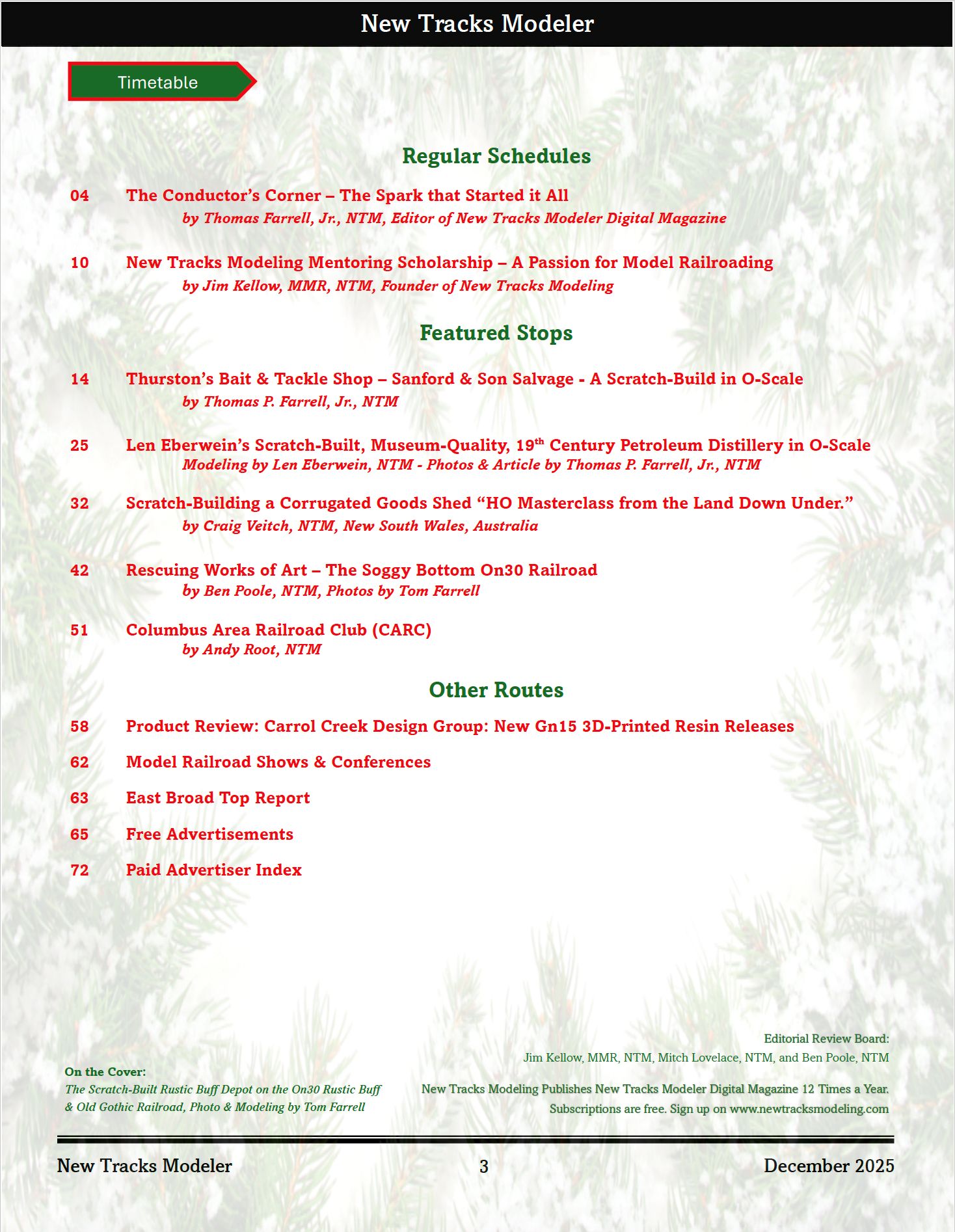 Now available the free 76 page issue number 7.0, December 2025 of the New Tracks Modeler magazine by Thomas Farrell, Jr., Editor, Host & Director of NTM.