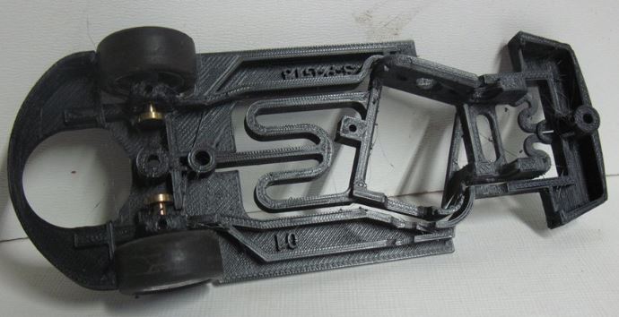 Chassis has integral AW pod on torsion arms to give a controlled rock to enhance track performance over the standard SW chassis, and the front axle stubs can be height adjusted on grub screws.
