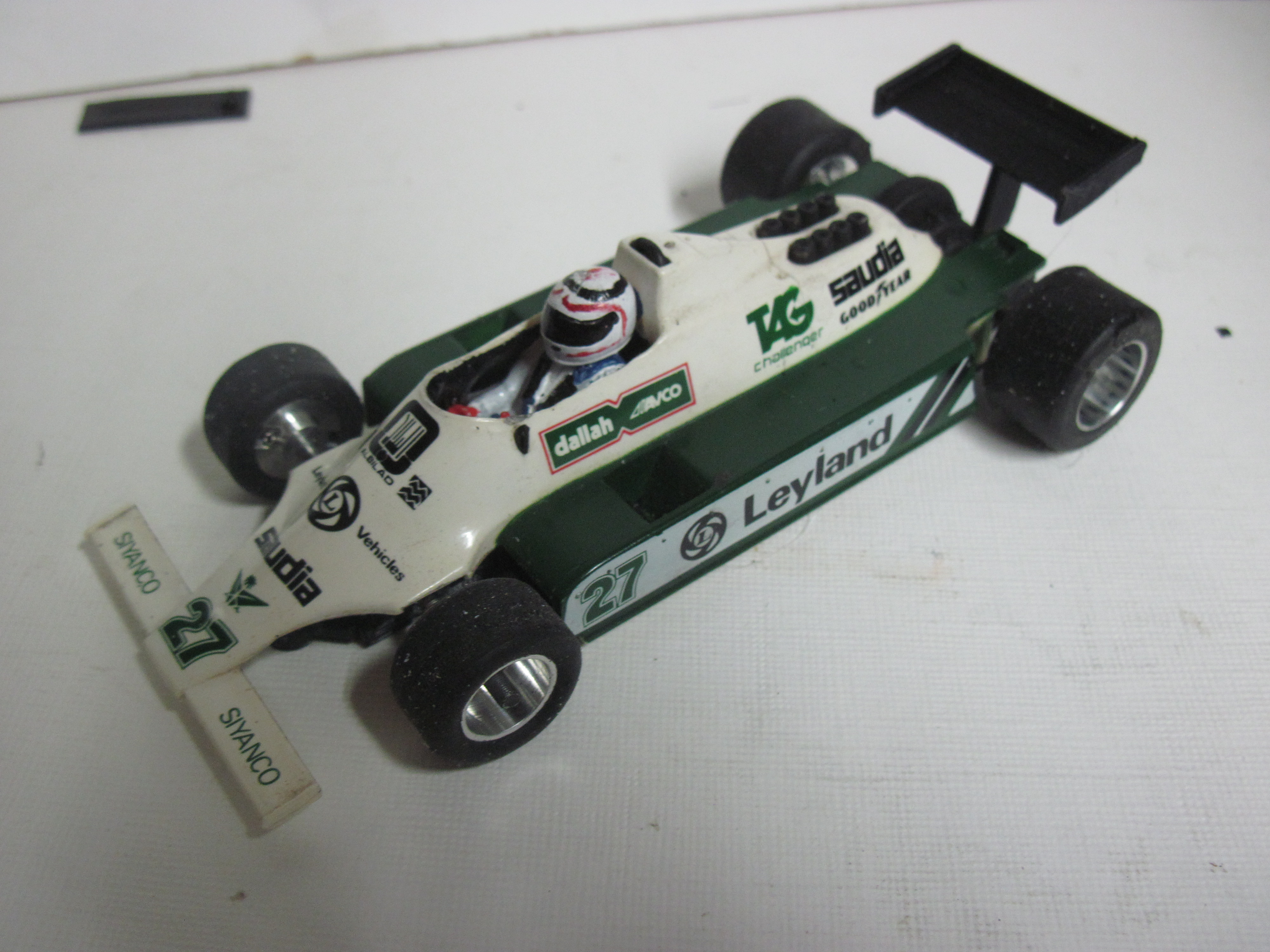 Latest addition to the range of chassis is for the Scalextric Williams FW007 shown below. Options available for the S can (FC130) or flat 6 motors. Some surgery on the body and gearbox moulding required to get the chassis to sit correctly, and we also offer a replacement rear wing which fits direct to our chassis.