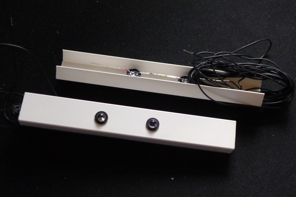 I then measured up and fashioned two gantries from PVC ducting and installed the 5mm IR emitters so they will sit directly over the receivers...