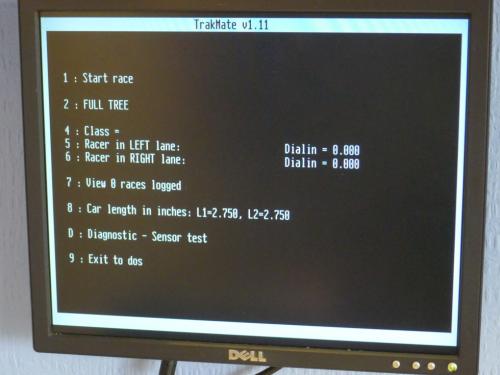 I have the oldest version of the Trackmate drag race system, which was then sold as 'Drag Basic' until about 3-4 years ago. The software is DOS-based and no longer available. There are only two sensors per lane - Start and Finish - with speed estimated at the finish line if you enter the car length. The tree is on the screen, with no way to use an external tree. There is the option of Full or Pro tree, plus full bracket racing features - dial-in and split tree. Results for the session can be logged and sorted. It is recommended that the software is run in a true DOS environment (available in Windows up to 98SE). Sensors are wired to a 25-pin D-sub connector and plugged into the computer's parallel (printer) port.