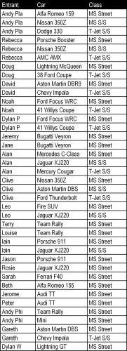 Another eight cars and seven new racers gives us thirty nine entries in the three core classes for this second event...