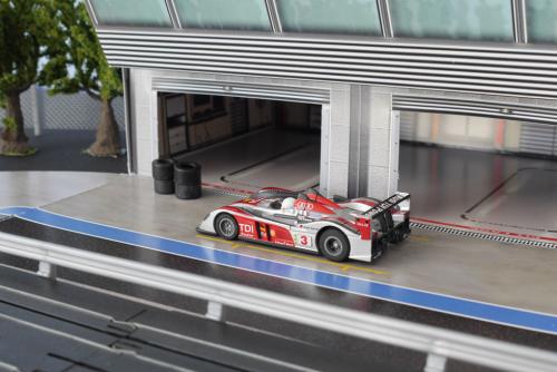 It's the Tomy AFX Audi R10 TDI from the 2008 Le Mans 24 hours. The model was released in 2011 as an individual car on the Mega-G chassis. Remember, the car is a mere 7cms (less than 3-inches) long and is built to withstand a lot of hard knocks on (and off) the track.