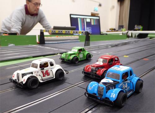 All looking the part they were - finally - FULLY race prepared and ran 6 x 3 minute heats totally reliably. No mechanical issues whatsoever and only one roll-over.Cars remained on the lanes as drivers rotated - but there was nothing to chose between them performance-wise. With new trued tyres of the correct type, the blue car's handling now matched the other three