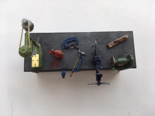 The parts are really detailed amazing for the size, there are also 2 oil drums and a compressor which at the time I hadn't painted.