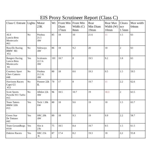 But more importantly especially with the classic Class cars the tyre width performance is probably a lot more critical due to car stability than with the other Classes where other characteristics of performance like overall car width or motor choice might be the dominating performance effect.