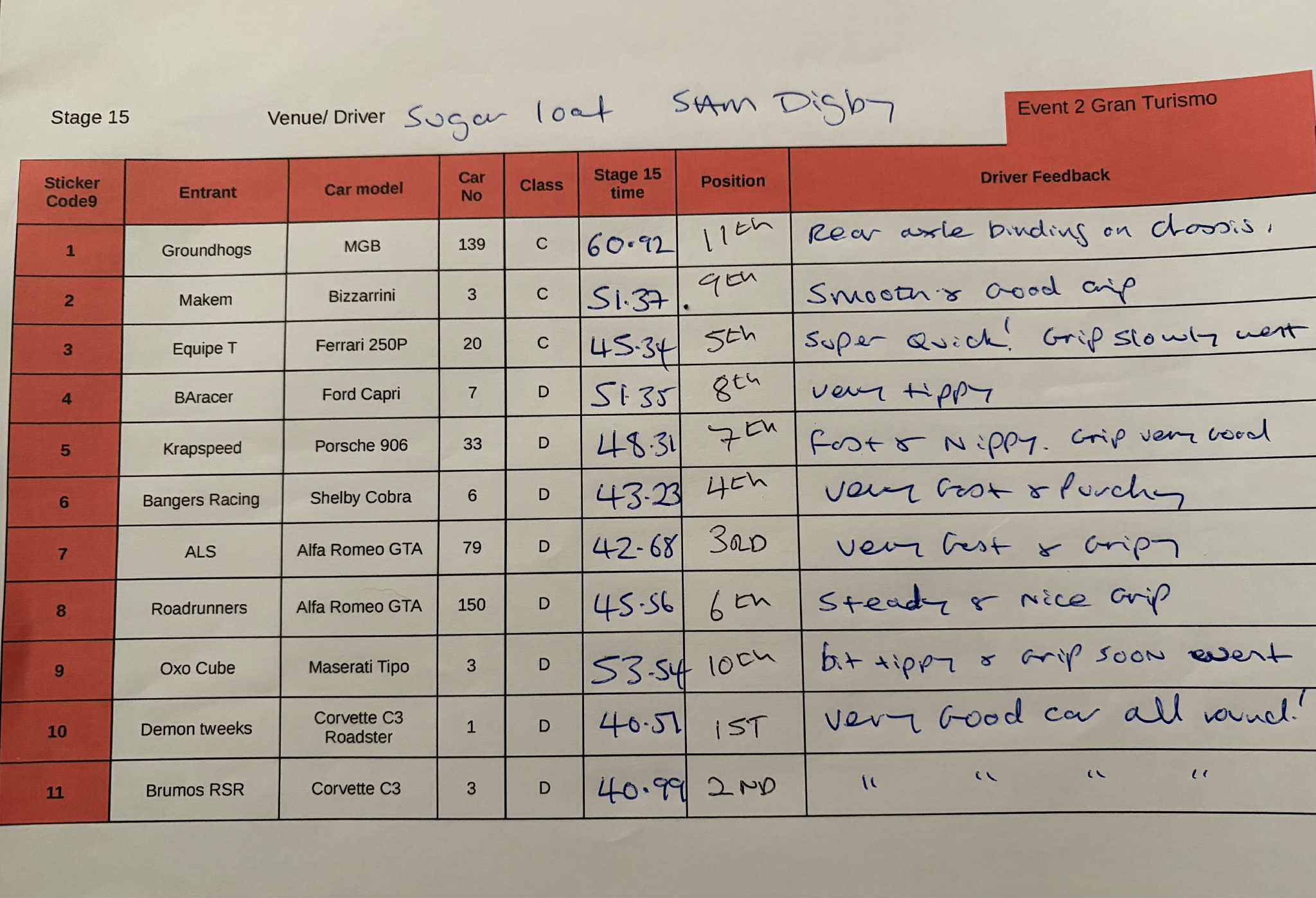 Many thanks to Phil and Sam for running the Wye Valley Club Round for us. Some great results on two different track types.