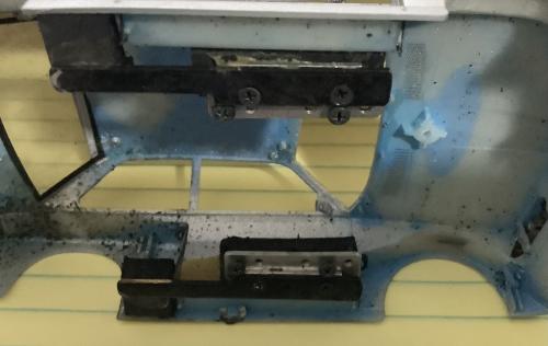 Here you can see how the bracket is glued the foam. You can also see how the brass weight is secured to the body mount and additional foam is added to support the weight and is glued to the body.