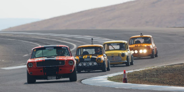 The ‘65 notchback Mustangs raced this time round were joined by a ‘69 Mach 1 Mustang.