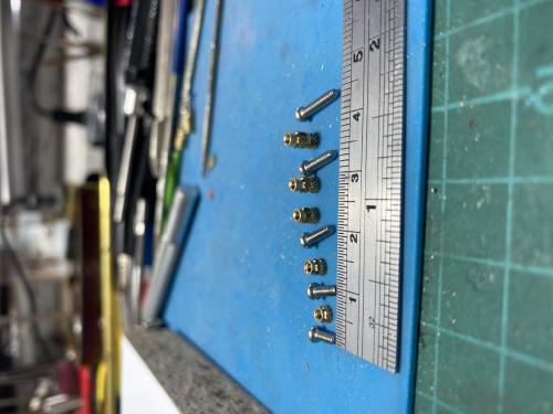 My plan is the longer of my inserts, gluing one in each corner of the boot lid, drill the holes under the rear bumper section where I've just added that brass.