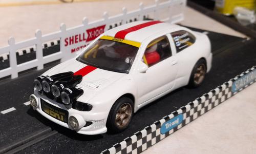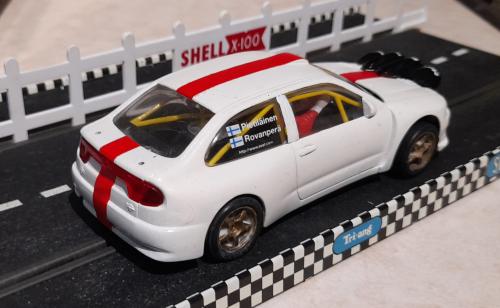 I painted it in anticipation of using it for the World Rally Proxy but ultimately didn't use it. So its just the base white with red stripe without any sponsor decals applied. I can't recall if it had the rear wing or if I lost it at some point.