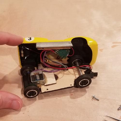 Thanks! Sometimes fitting the LEDs is a bit fiddly. What was done for this car was to fit each LED separately into the body shell, bending and trimming the leads to clear the tires, then putting them into the jig to solder. Before using RC56 aliphatic glue to secure them they were tested using a 12v source. The resistor allows for about 14v max if memory serves.