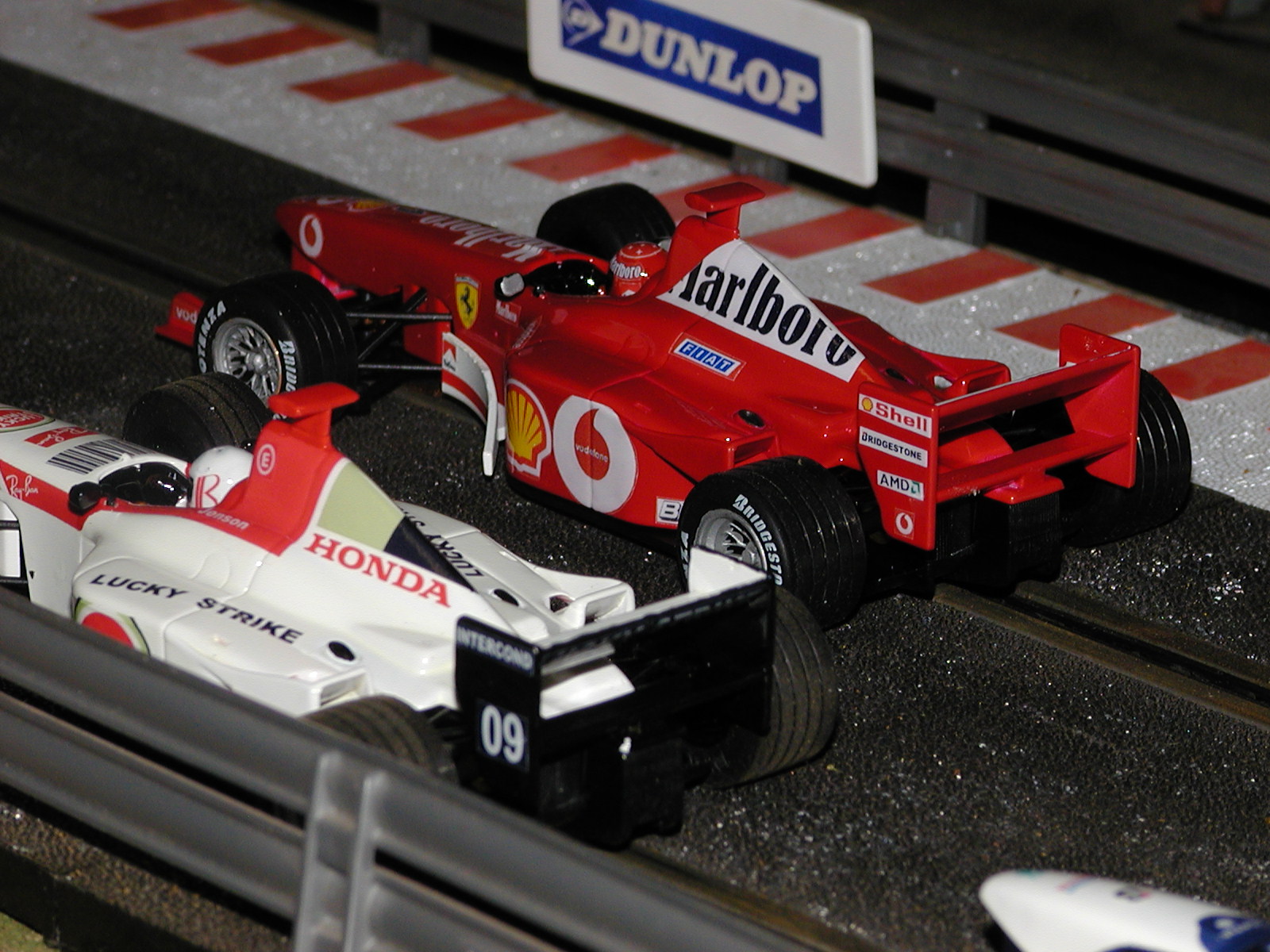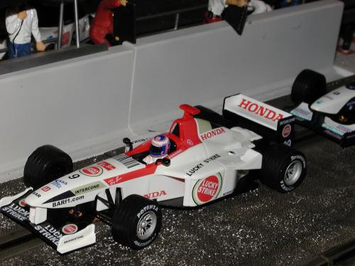 The #3 Ferrari is one of the old Scaly "Clamshell" chassis cars with the RX "train" motor. It has had a bit of a paint job, some new wheels/inserts, gearing, and a bit of motor work............runs great !!