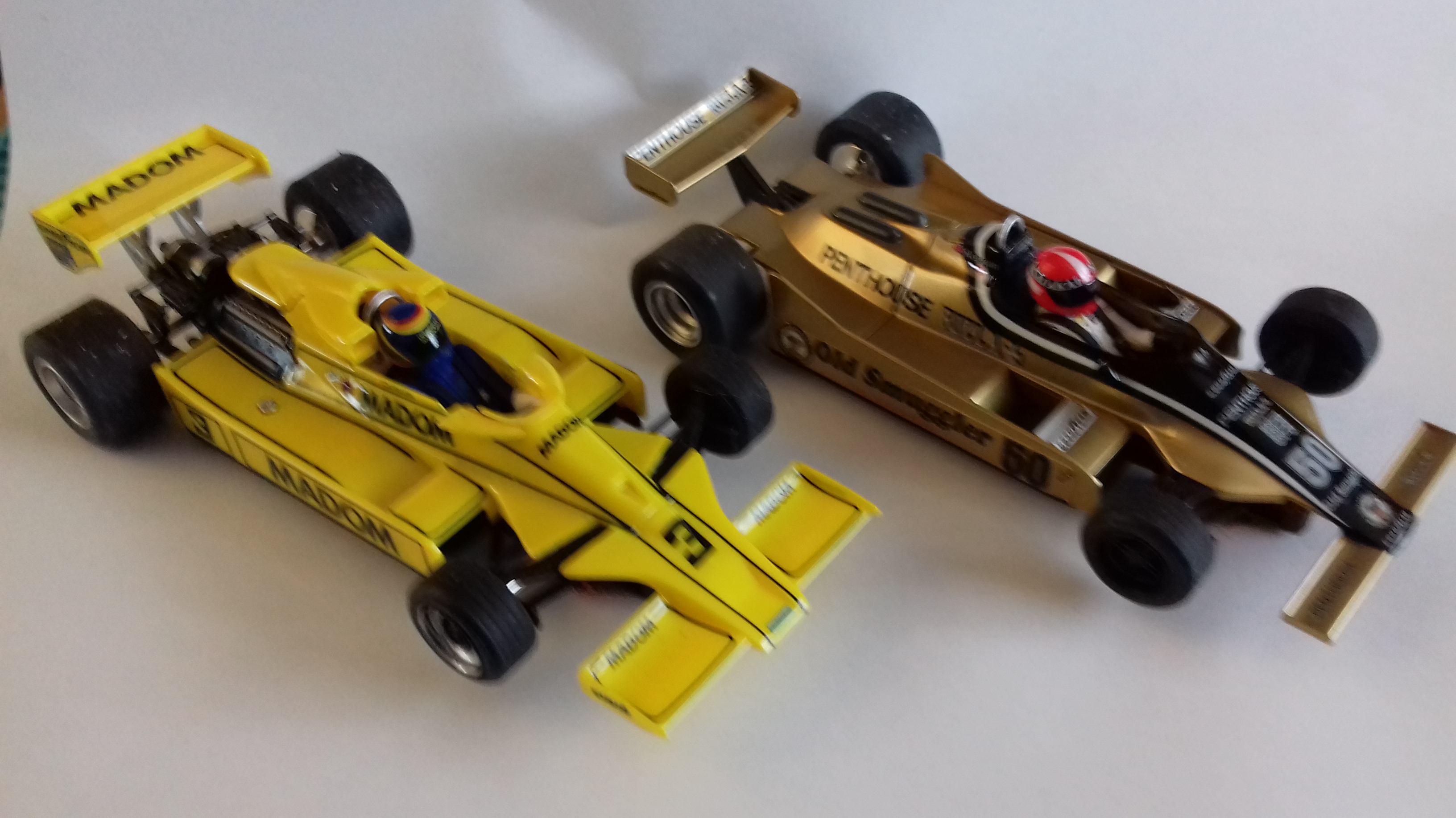 Unfinished SRC Ferrari and Mclaren M23. Bodies and some detail parts were all bought from the SRC website when they were clearing out spare parts.
