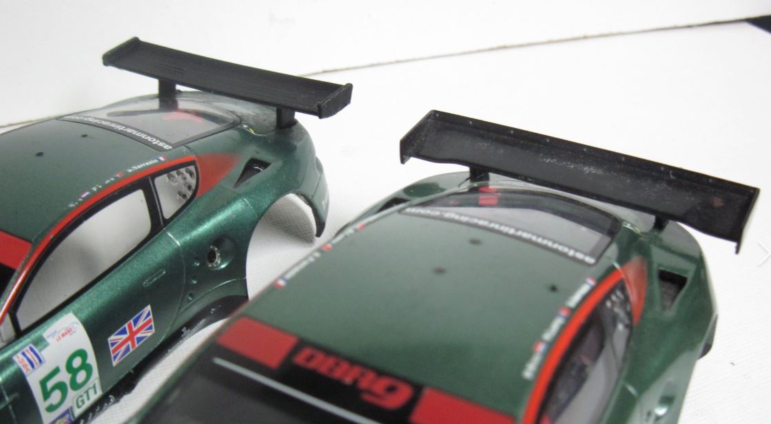 Scalex Aston Martin Vantage. 3d printed chassis below is AW boxer, other options will be AW FC130, IL Boxer and a SW. We can also offer the rear spoiler 3d printed as well (shown in pics).