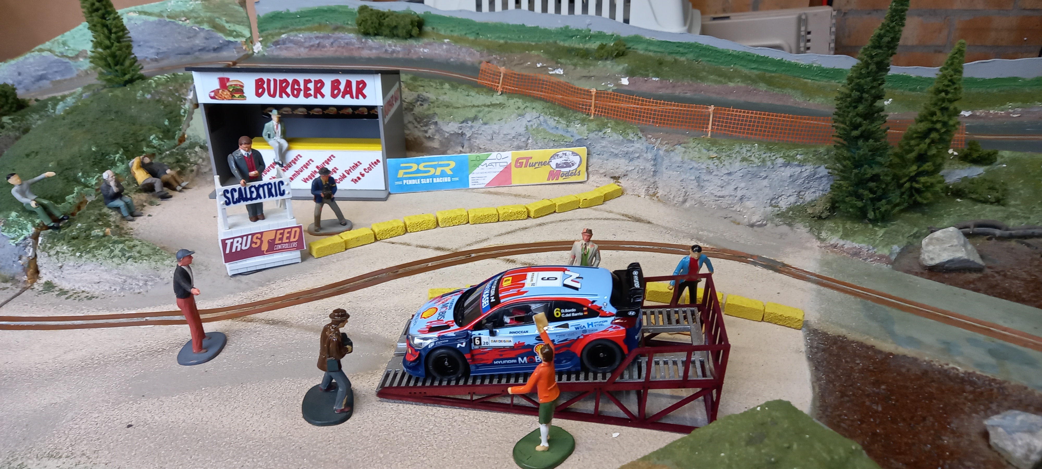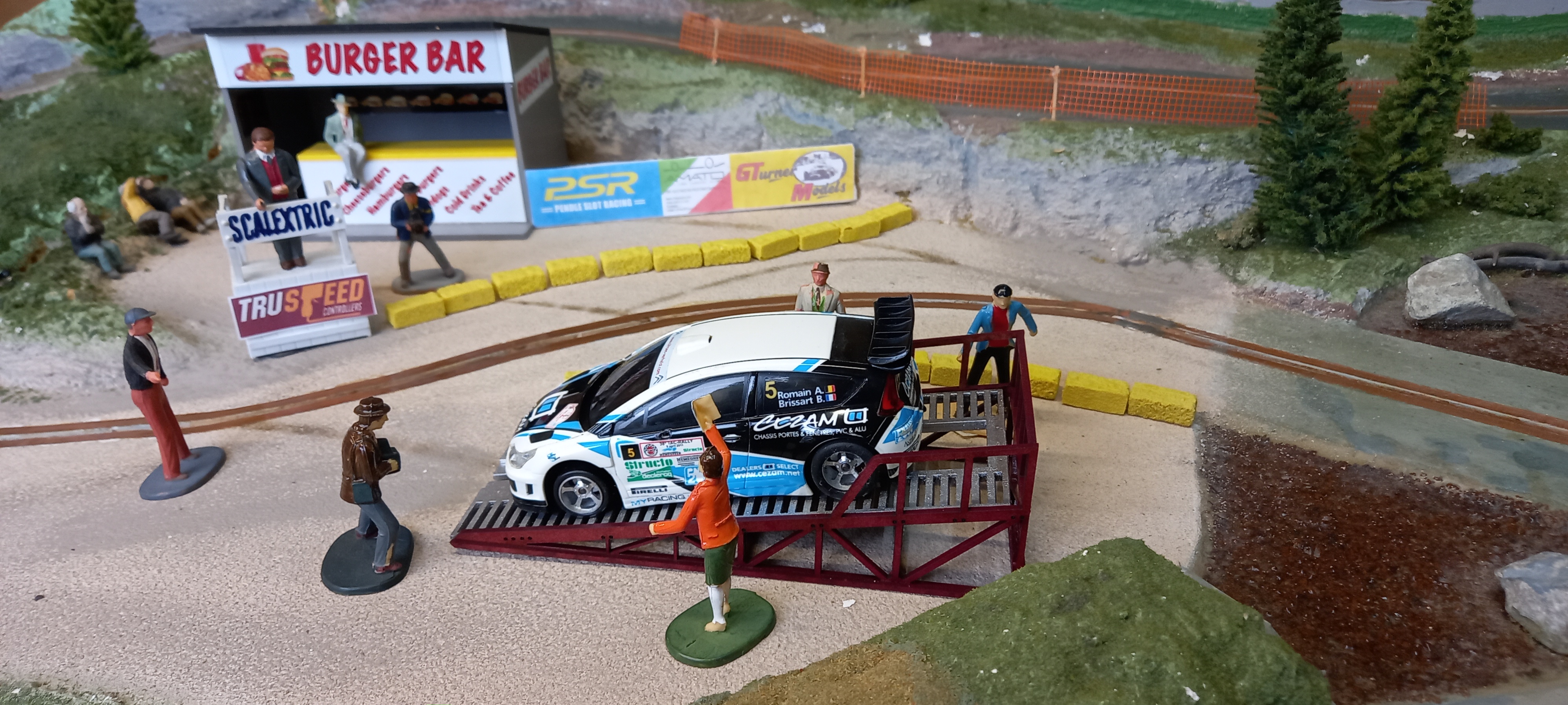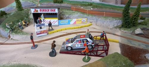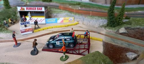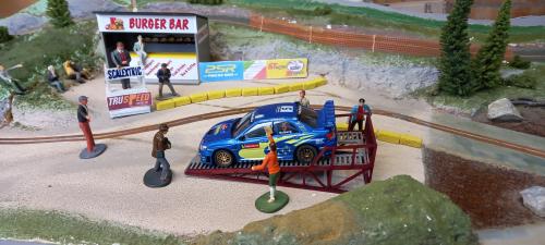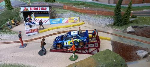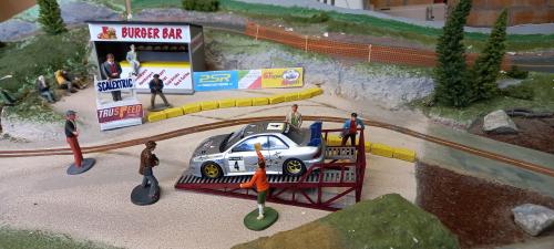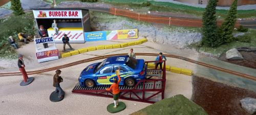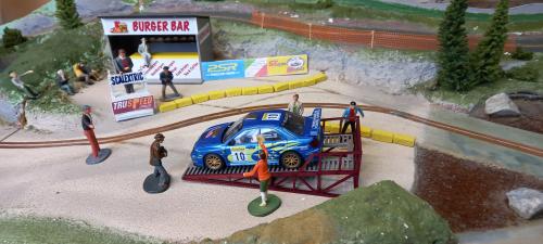 They are trying their luck with a one entry Standard Scalextric Subaru. This model looks like an "out of the showroom" model, perfect appearance. I doubt it has been run before on a track. And it runs quite fast as well.